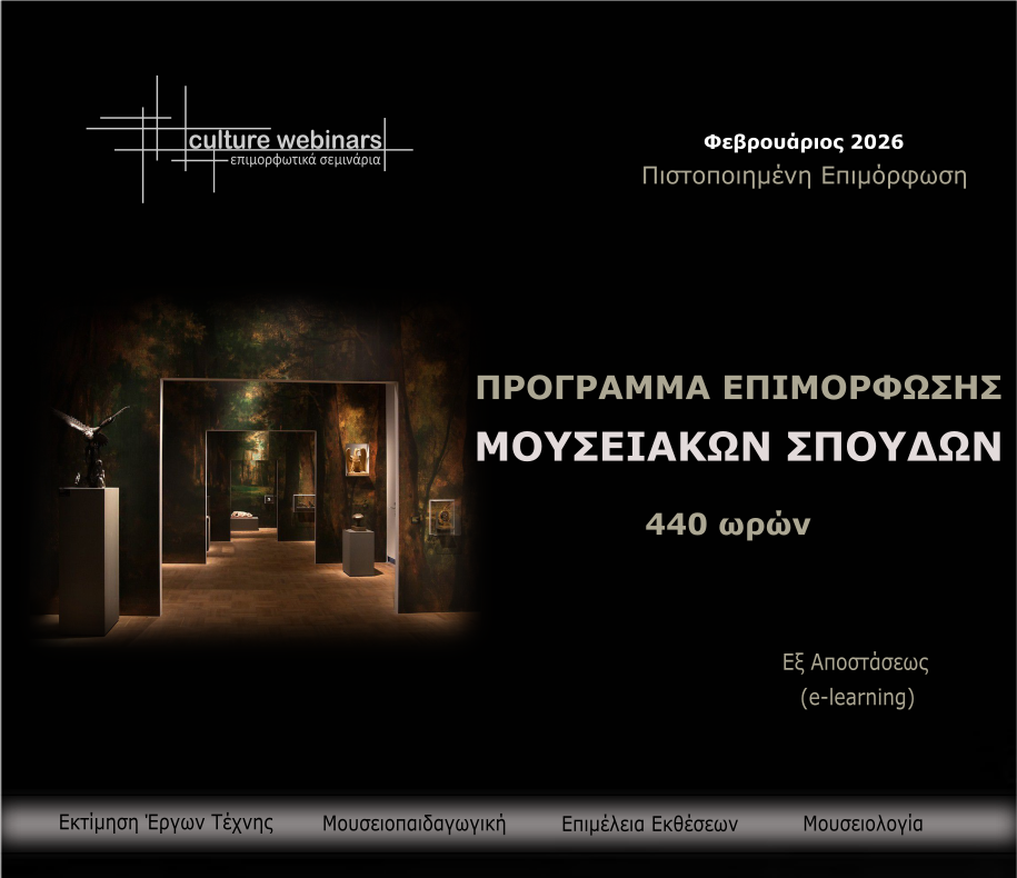 Culture Webinars Βεβαιωμένα εξ αποστάσεως επαγγελματικά επιμορφωτικά σεμινάρια σε εξειδικευμένους τομείς του πολιτισμού